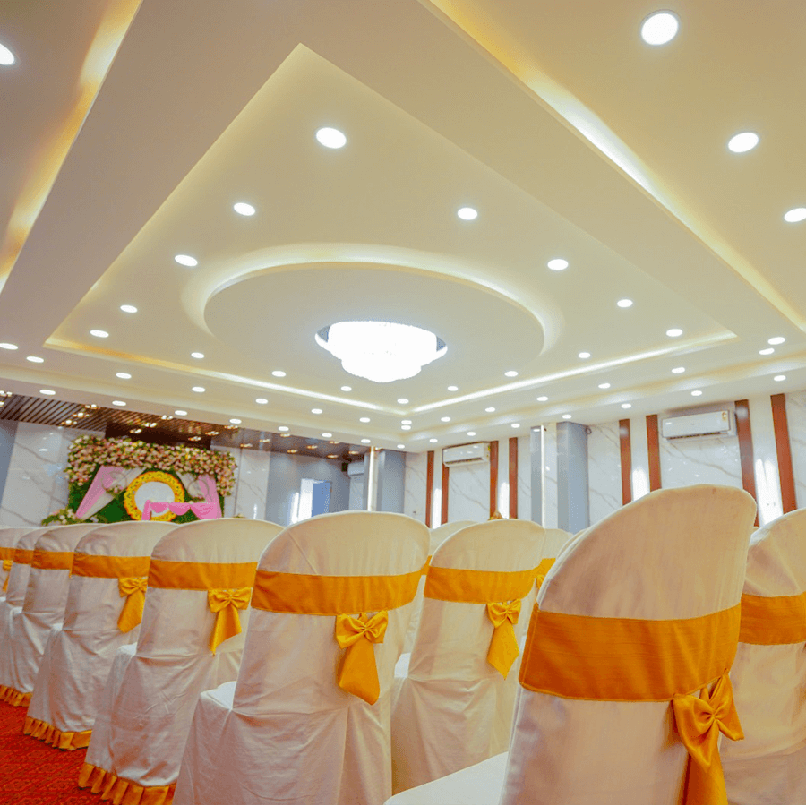 Our reception halls in South Bangalore are designed to accommodate large gatherings while maintaining an atmosphere of sophistication and warmth. Walls and corners are dressed in elegant finishes, and every element is chosen with care to reflect the mood of the occasion